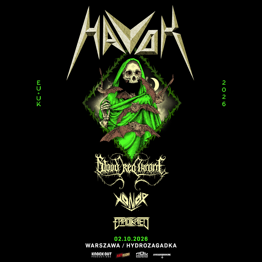 Havok są jednym z najbardziej zasłużonych zespołów w thrash metalu z XXI wieku. W odróżnieniu od ich wielu gatunkowych kolegów nie łapią zadyszki, wciąż dając świetne koncerty i czarując taką samą energią jak chociażby za czasów świetnego „Time Is Up”. Supportami Amerykanów będą deathmetalowcy z Blood Red Throne oraz thrashowe Xonor i Eradikated.